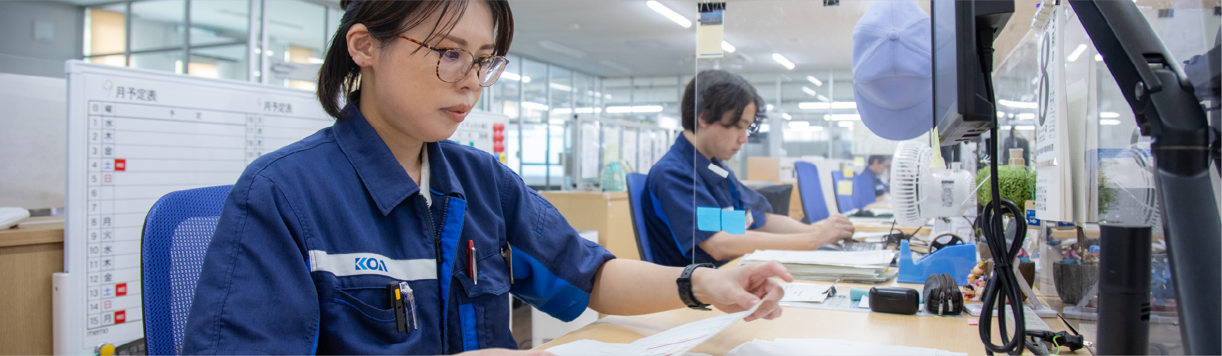 2021年に入社して以来、泰阜工場の製造現場にいましたが、間接部門で働いてみたいと上司に伝えたところ、2025年7月から製品技術グループ所属になりました。具体的には、当社のセメント抵抗器に関して、製品の試験とともに、材料が変わるなど変化点があったときのレビューなどを行い、必要があれば製品の改良にもたずさわります。この仕事を通して、お世話になった工場に恩返しすることが今の目標です。