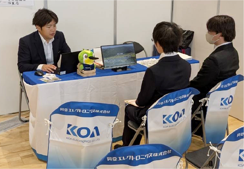設立されて50年以上経つ会社ですから、工場のある周辺では知名度が高いものの、少し離れたらご存知ない方も多くいらっしゃいます。そこで、KECファンを増やすために、当社社員が中学校へ出向いてものづくり授業をして、電気・電子の楽しさをしってもらったり、日々の改善活動のマスコットキャラクター「しずく」の着ぐるみ飯田市や阿南町のイベントに参加したりするなどして、アピールに努めています。